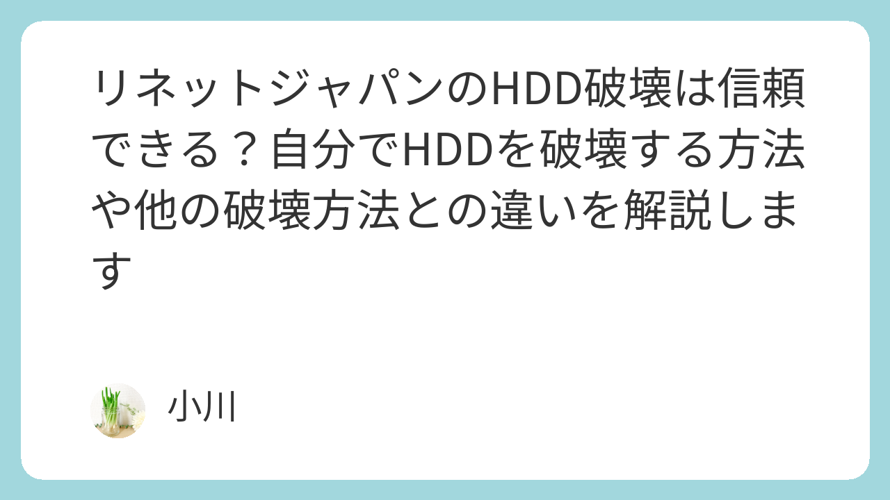 以下の記事で、リネットジャパンと自分でHDDを破壊する場合の違いや、注意すべき点についても詳しく解説していきます。